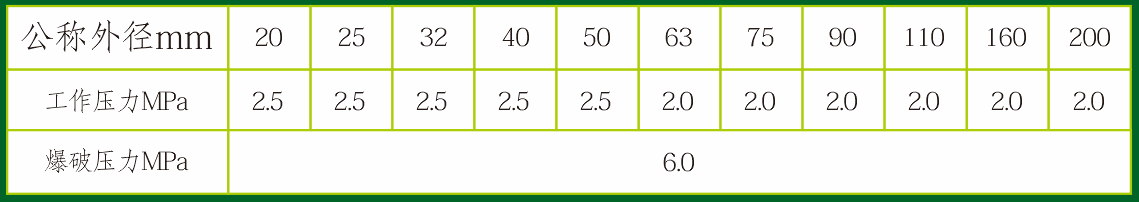 工作壓力2.0MPa,爆破壓力6.0MPa,抗水錘沖擊能力強(qiáng)。剛性、抗沖擊性,拉伸強(qiáng)度高達(dá)275~320Mpa,是純塑料管的7~8倍;