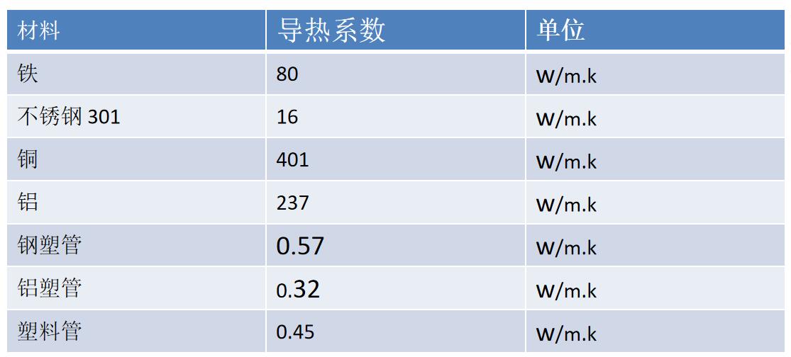 不同材料的導(dǎo)熱系數(shù)對(duì)比