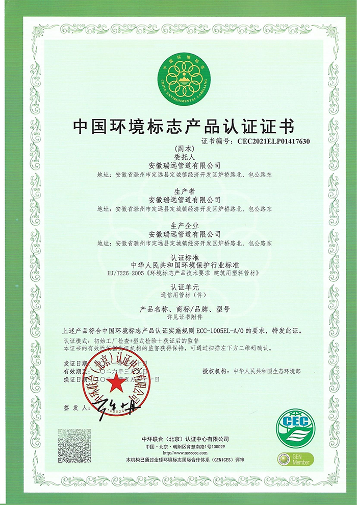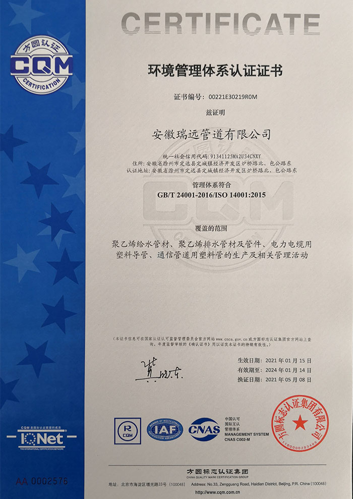 環(huán)境管理體系證書